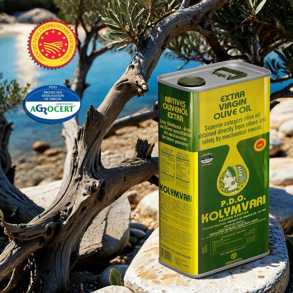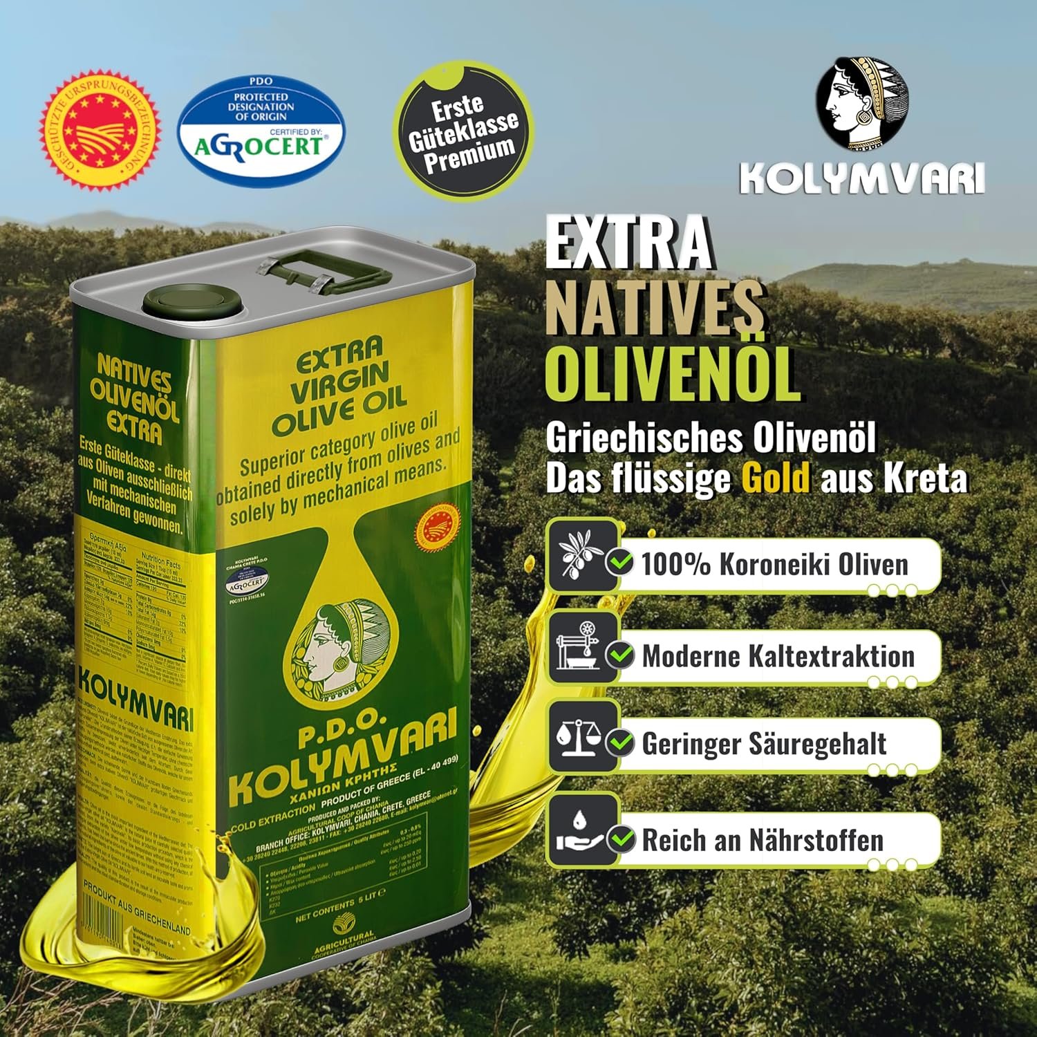 Kolymvari P.D.O. Premium Olivenöl – 5L Kanister – Extra Nativ aus Kreta | 100% Koroneiki Oliven | Kaltextraktion & Handernte | Nährstoffreich und naturrein | Höchste Qualität mit niedrigem Säuregehalt für Gesundheit und Geschmack